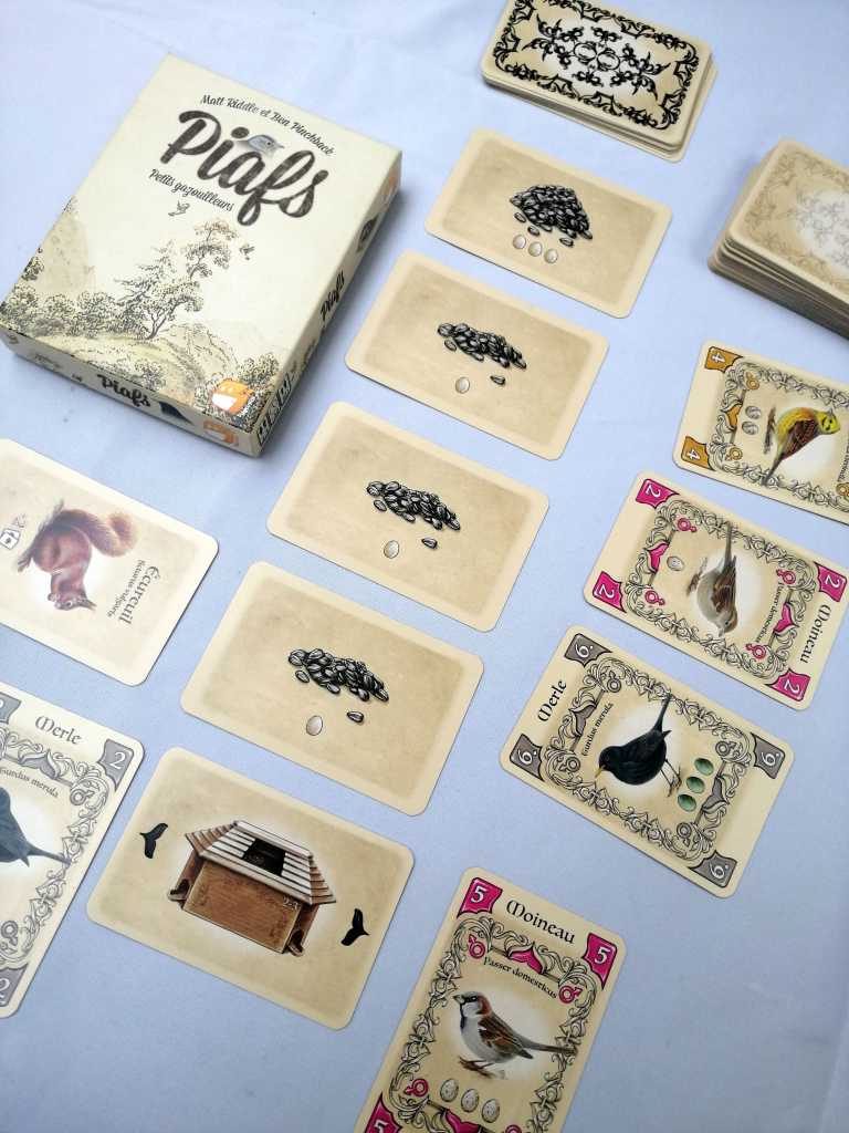 PIAFS est un jeu de collection et de majorité plutôt subtil… Tellement qu’il m’a fallu quelques tours pour comprendre vraiment les règles du jeu. La mécanique, déroutante, ne m’a pas totalement embarquée. J’ai gagné sans vraiment comprendre les tenants et les aboutissants. Le jeu reste plaisant mais doit être meilleurs à trois joueurs.