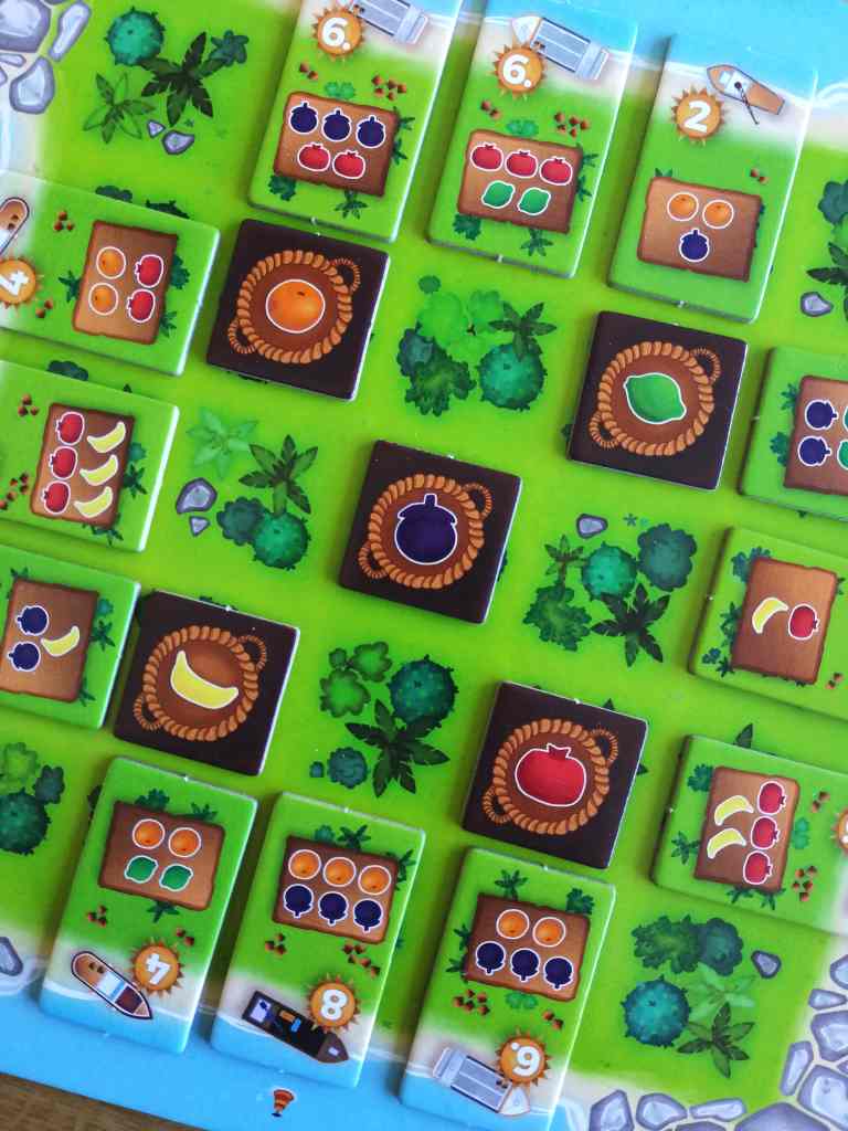 – Ils doivent déplacer un de leurs jetons Récolte pour récupérer autant de fruit correspondant à ce jeto que le nombre de cases libres parcourues ou déplacer un de leurs jetons Aménagement mobile pour utiliser sa capacité.