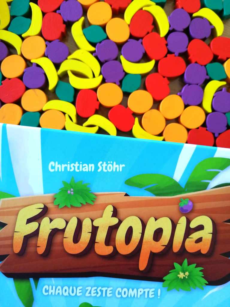 Tout l’intérêt de FRUTOPIA repose sur sa mécanique originale et « taquine ». En effet, la récolte de fruits passe par des mouvements linéaires de leur panier correspondant. Plus ces paniers franchissent de cases, plus la récolte sera fructueuse. Ainsi, l’organisation de l’île et des différents curseurs représentent un enjeux majeur pour optimiser au maximum chaque déplacement. Le bémol, découlant de ce système de jeu, vient du fait que les joueurs ont clairement le nez dans leurs paniers de fruits. Les intéractions se retrouvent alors uniquement sur l’achat des aménagements.
