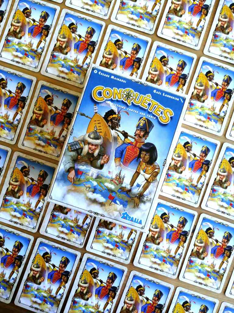 CONQUÊTES est le premier jeu édité par Atalia, jusqu’à présent uniquement distributeur. Et c’est tout naturellement que l’on retrouve Cesare Mainardi à la baguette, associant son rôle de chef d’entreprise à celui d’auteur. Cet opus n’aurait pas pu s’appeler autrement tant cette aventure entraine l’entreprise bleu et blanche vers de nouveaux horizons ludiques, que l’on ressent comme une bouffée d’oxygène pleine de promesses ou une revanche sur un passé compliqué.