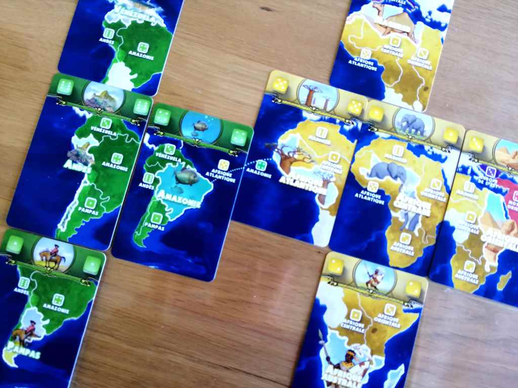 ° Poser une nouvelle carte Région dans leur Camp. Celle-ci doit être unique autour de la table. Si cette région est limitrophe à une région déjà posée, accolez la pour former un Territoire. Un Territoire est donc un ensemble de carte Région limitrophes.