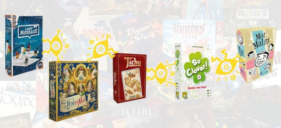 Pour que cette sélection soit la plus représentative possible de mes goûts personnels, je me suis accordée la liberté d’ouvrir la catégorie « en soirées » à d’autres styles que le jeu d’ambiance pur. J’ai également tenté de mettre en avant la variété et l’originalité de certains titres pour que chaque catégorie soit la plus hétéroclite possible.