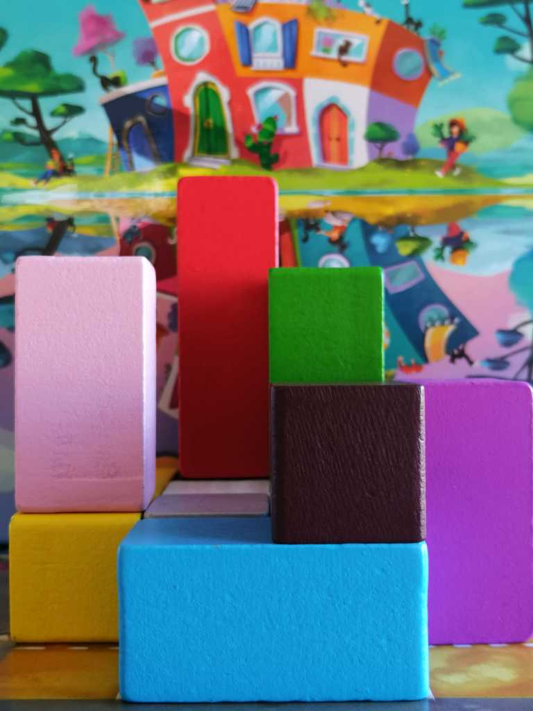 Et le fait que RECTO VERSO ait l’image de son contenu est une très bonne chose car il en a sous le capot ! Il suffit d’un tour de jeu d’une minute à peine pour ressentir des émotions originales, intenses et impressionnantes. Les joueurs sont immédiatement séduits par ce mécanisme brillant de construction à la fois asymétrique et collective. L’idée est juste génialissime ! Le jeu d’assemblage de pièces devient obligatoirement un jeu de communication dans l’urgence. En effet, sous pression temporelle, les joueurs doivent reconstituer le Bâtiment de la carte avec des indications différentes. Le jeu est une course contre la montre dans laquelle on fait, on défait, on déplace ce que fait notre partenaire avec des explications plus ou moins claires et audibles dans la précipitation.