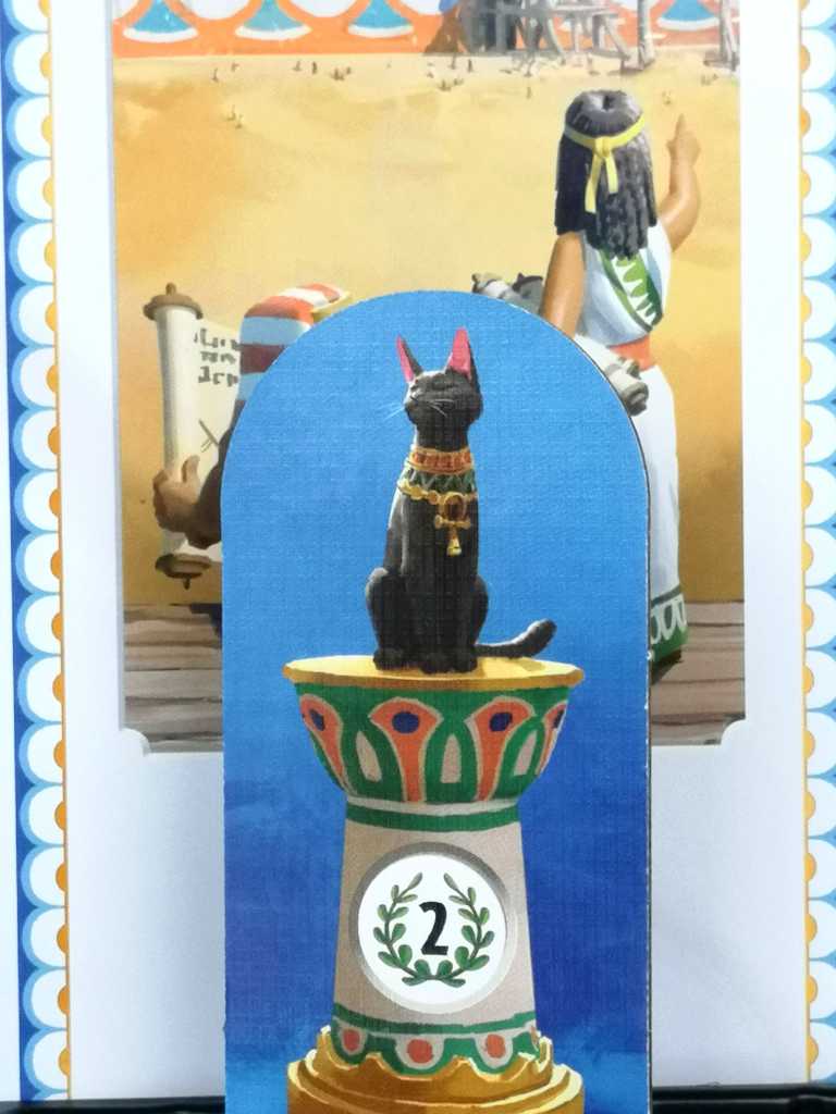 – Cartes Bleues. Elles offrent des points de victoire en fin de partie. La présence du chat permet de récupérer le pion correspondant afin de prendre connaissance de la première carte de la pioche centrale à tout moment.