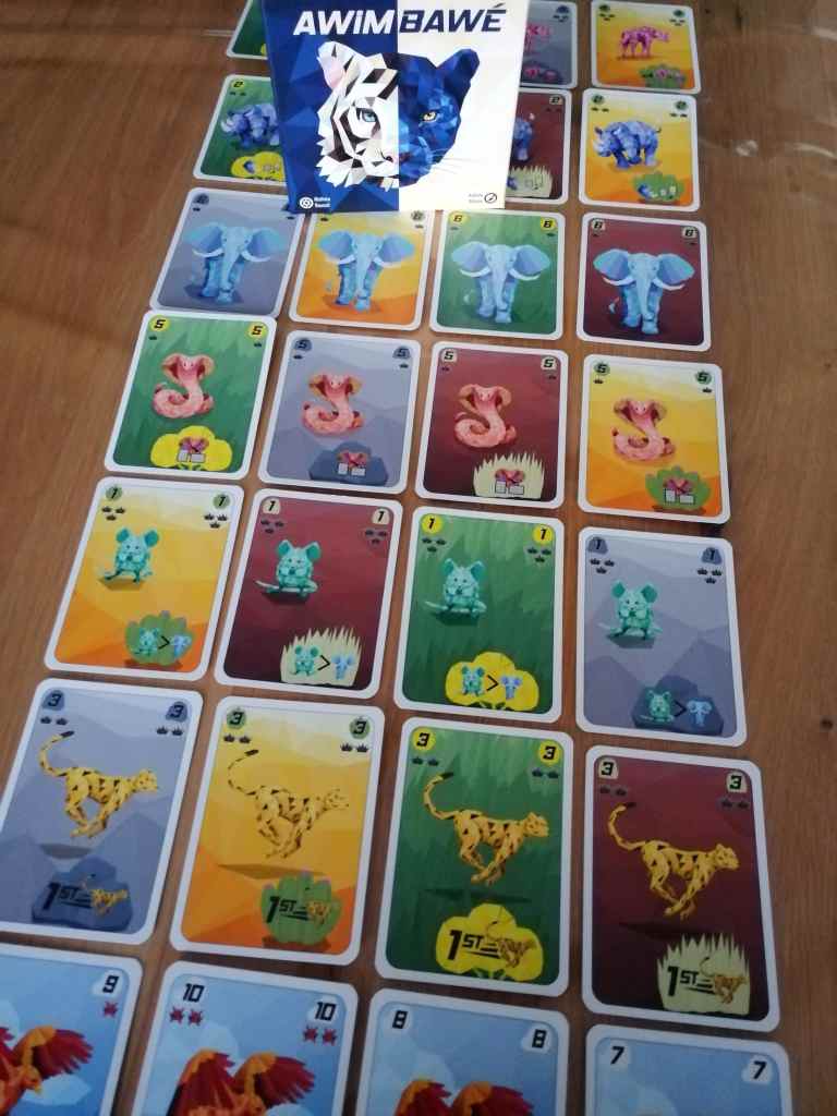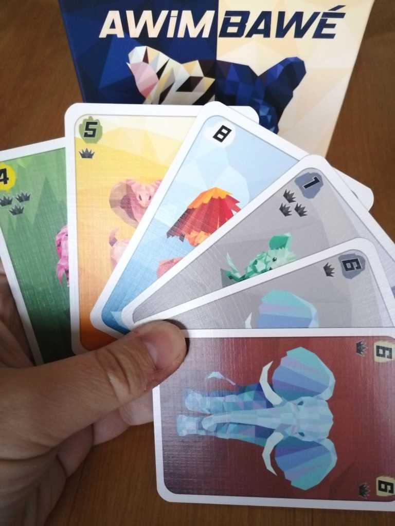 Ces deux principes font d’AWIMBAWÉ un jeu tactique pas si évident à prendre en main. Les règles ont beau être simples, les choix ne le sont pas. Il faut d’abord bien se familiariser avec les différentes capacités et ensuite savoir les utiliser aux meilleurs moments. De plus, mémoriser les plis effectués et les animaux déjà sortis sera un paramètre important pour l’emporter. Pour cette raison, l’âge minimum réclamé de huit ans me semble légèrement sous-estimé.