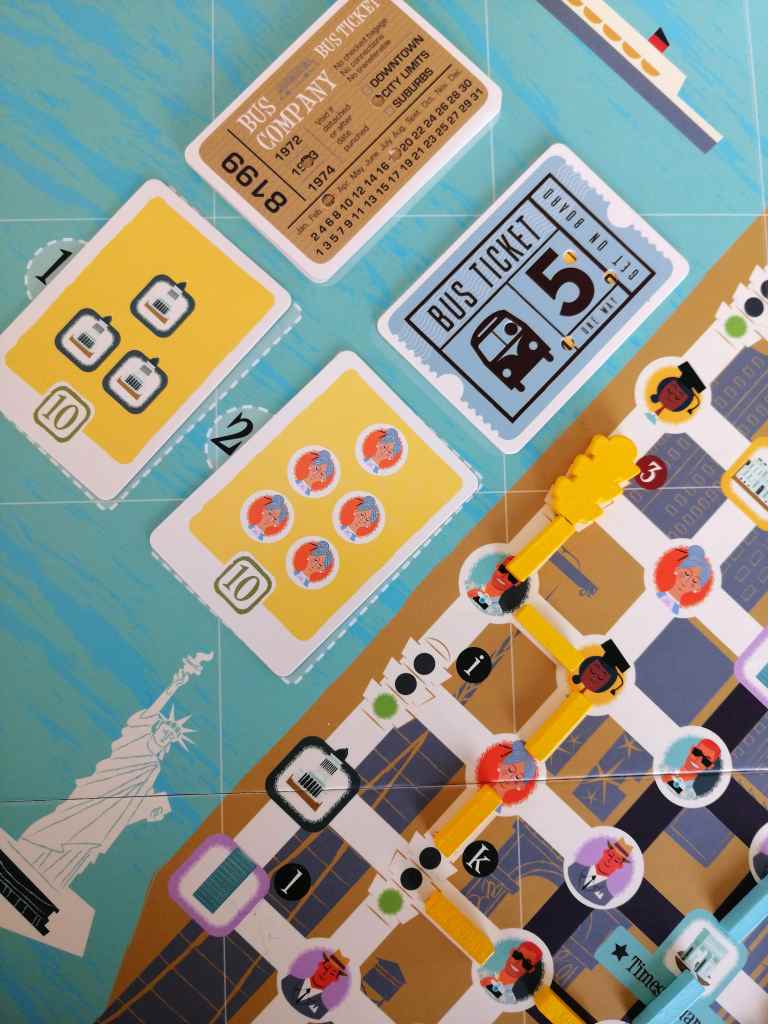 Oui, cet aspect aussi est singulier et très plaisant ! Il faut se rendre dans un ordre très réfléchi aux différents attraits de la ville. Aller voir la Statue de la Liberté avec un bus vide n’a pas grand intérêt et surtout ne permettra pas de gagner beaucoup de points. Il faut d’abord charger le bus pour ensuite amener tout ce beau monde contempler les lieux emblématiques par exemple. Le plateau devient alors le centre d’étude et d’analyse de chaque joueur. D’ailleurs, il faut avoir de bons yeux face à ces plans de ville très chargés et condensés d’informations. Décidément, après Last Message, Iello doit posséder des parts chez Aflelou !