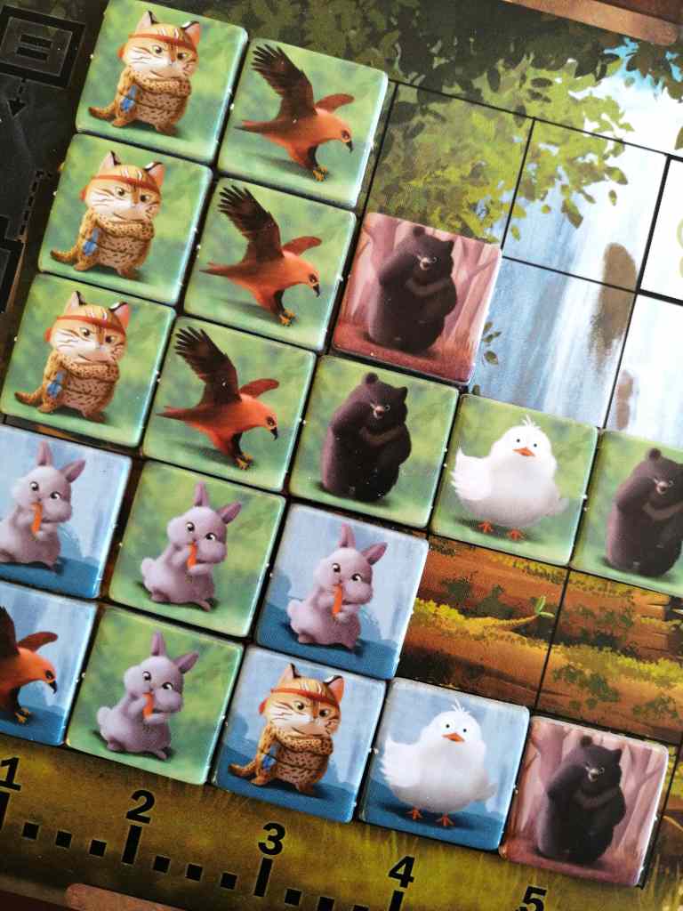Ce matériel vient malheureusement ternir les interactions, déjà réduites aux choix du jeton Animal à déplacer en début de tour. Les sensations sont en effet plutôt solitaires et le manque d’évidence dans la lisibilité accentue cette façon de jouer le nez dans son objectif.