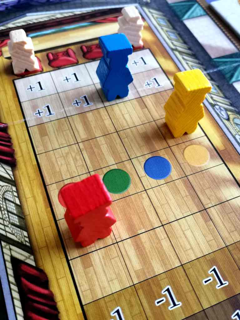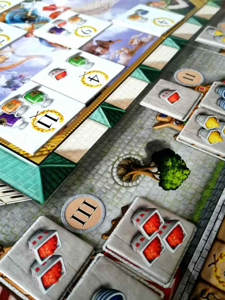 Pourtant, la mécanique principale de prévision d’actions est un moment de réflexion très solitaire. L’ordre imposé des actions, dans la phase suivante, suppose des calculs rigoureux pour rentabiliser chacune d’entre elles. Mais les joueurs devront aussi tenter de percevoir ce que vont effectuer les autres joueurs. C’est indispensable pour ne pas se retrouver le bec dans l’eau. A première vue et étant donné le nombre de tuiles à rénover, les joueurs sont loin de s’imaginer qu’ils vont se marcher dessus… Et pourtant, c’est bien le cas, et plus souvent qu’ils ne le pensaient. Les plus malins sauront accélérer ou temporiser dans la rénovation pour ne pas être trop enquiquiné.
