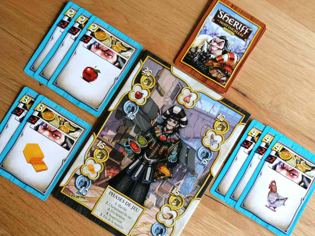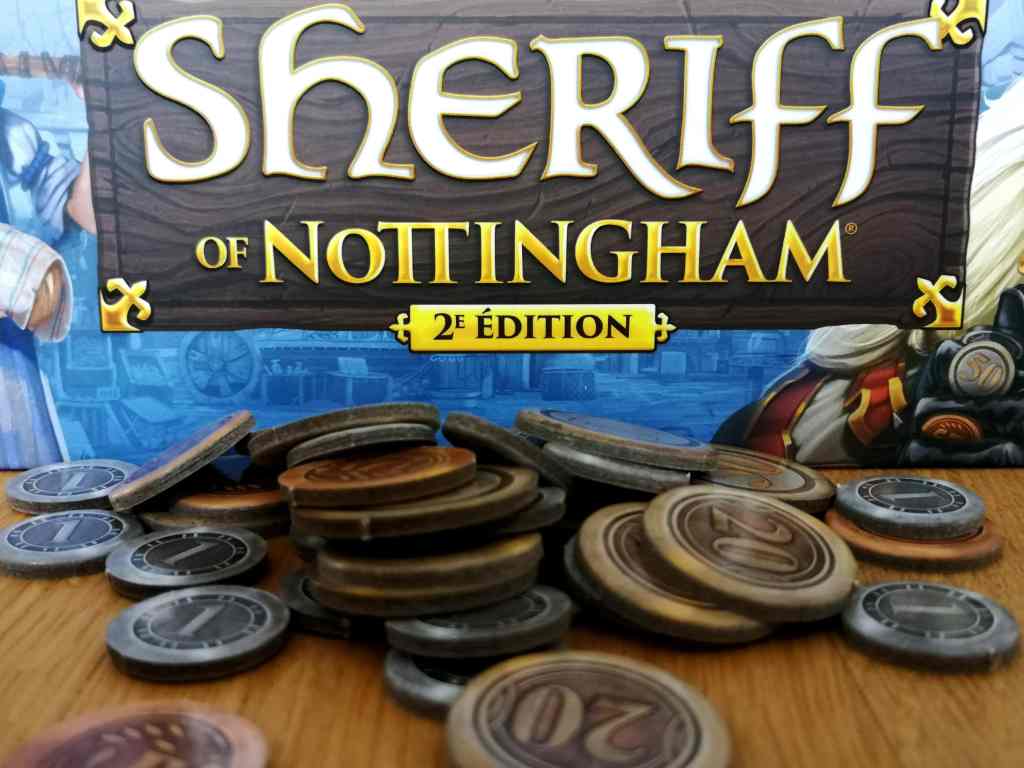 SHERIFF OF NOTTINGHAM propose aux joueurs d’incarner des marchands afin de faire passer sur le marché de la ville des marchandises légales mais surtout de contrebande bien plus lucratives. Le Shérif, joué à tour de rôle, veillera à ce que les règles soient strictement respectées… Enfin, presque ! On sait tous qu’un petit billet glissé par-ci par-là peut aider à devenir aveugle… L’idée est juste géniale et le thème est parfaitement concrétisé dans ce jeu où presque tous les coups sont permis.