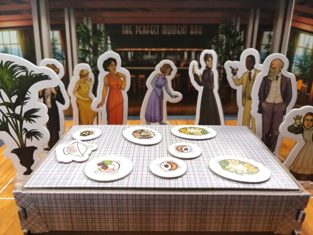 En voilà un jeu singulier ! A l’aide d’informations partielles et découvertes progressivement, les joueurs doivent organiser un plan de table pour immortaliser cet instant éphémère. Chaque invité à des souhaits à satisfaire. Très immersif, on se prend rapidement au jeu dans ce casse tête plutôt solitaire au final. Une curiosité !