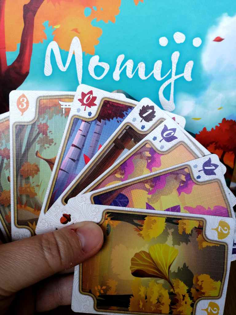 Ainsi MOMIJI est un petit jeu de cartes subtil associant placement abstrait, collection et gestion légère. Le système de jeu oblige à des décisions souvent tendues pour optimiser au mieux son espace de jeu et les points de victoire potentiellement récupérables en fin de partie. Les intéractions se trouvent essentiellement dans la recherche de propriété des jetons Objectifs et dans le choix des pioches de cartes. La construction de son tableau est plus personnelle et solitaire.