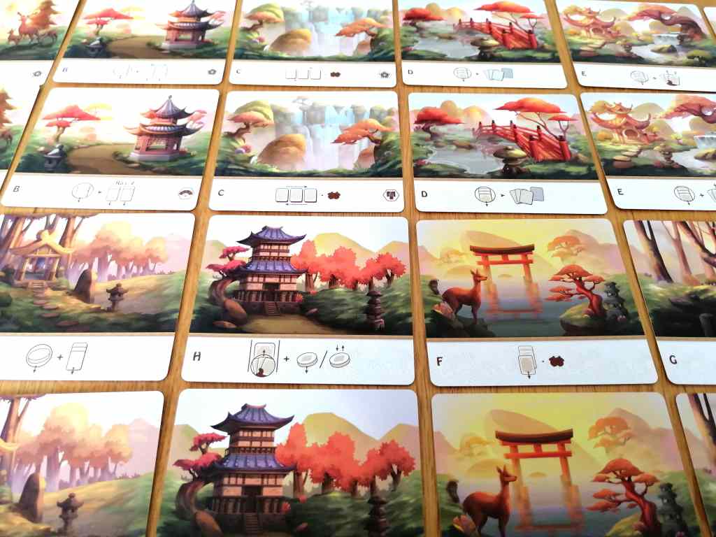 Même si la thématique sert surtout d’enveloppe esthétique de luxe, sublime et poétique, elle apparaît tout de même en cohérence avec la mécanique réclamant d’empiler des types de feuilles différents. Sur le papier, « ça match » comme on dit. En réalité, MOMIJI est un jeu de collection de cartes plutôt abstrait et très mécanique.