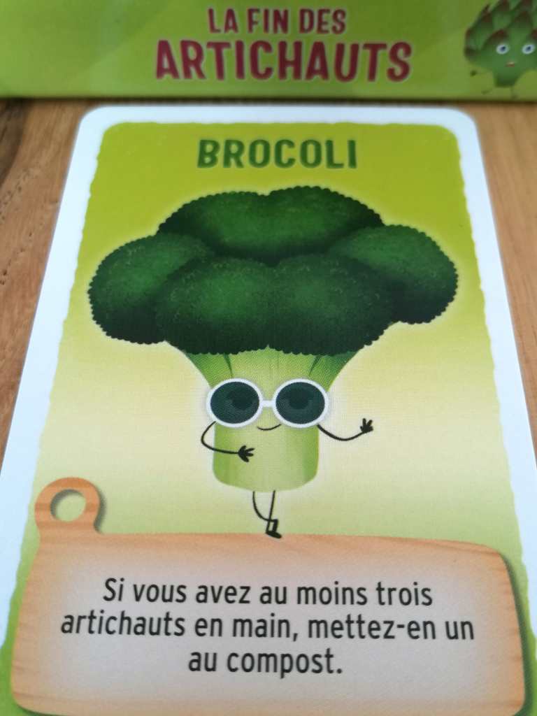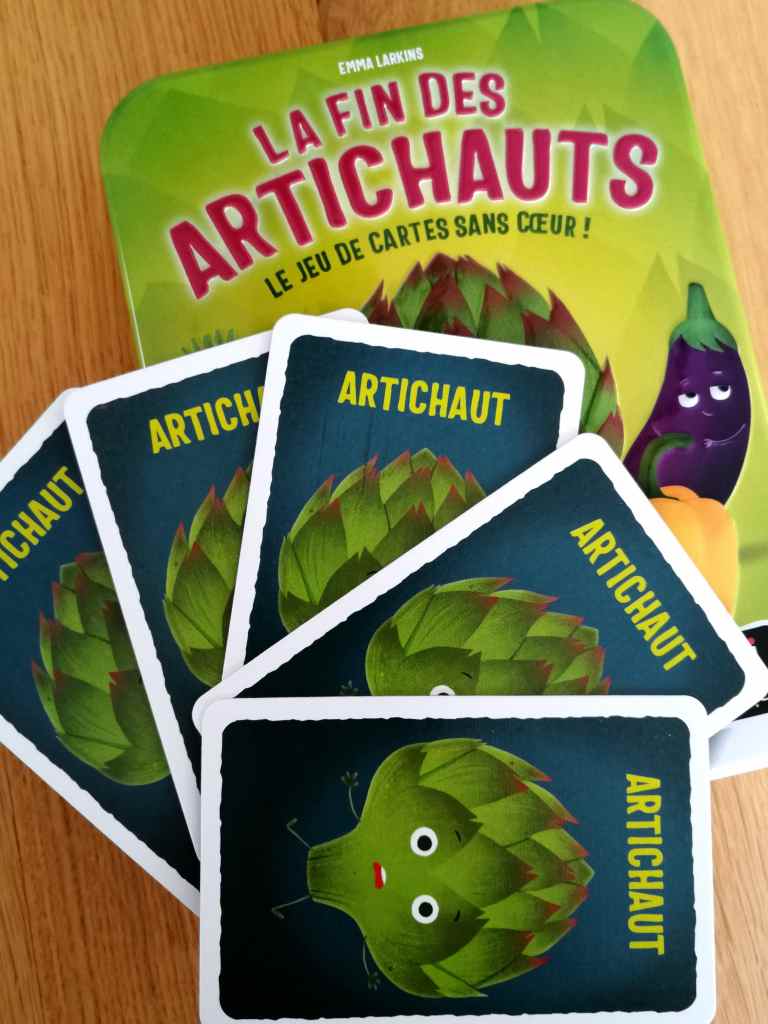 Et c’est bien dans la condition de fin de partie que LA FIN DES ARTICHAUTS se démarque et prend toute sa saveur et sa singularité. Si un joueur n’a plus aucun artichaut dans le renouvellement de sa main à la fin de son tour de jeu, alors il gagne immédiatement la partie. La tension est palpable en permanence et les victoires plus ou moins prévues créent un effet de surprise très agréable et porteur d’un sentiment de fierté hyper galvanisant.