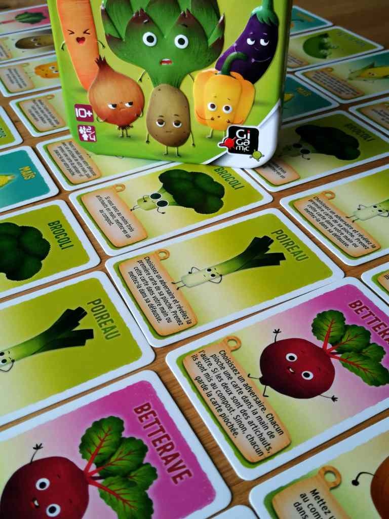 Le thème, même s’il fait sourire, est un prétexte efficace à une mécanique de « Deckbuilding » très épurée. En effet, les joueurs doivent se débarrasser de leurs dix artichauts de départ en utilisant les effets des cartes qu’ils vont récupérer progressivement. Tout est limpide et le titre favorise le mélange de genres autour de la table. Les néophytes découvriront avec légèreté une des mécaniques phares du jeu de société alors que les joueurs plus réguliers s’éclateront à combiner leurs légumes le plus efficacement possible pour provoquer une fin de partie anticipée.