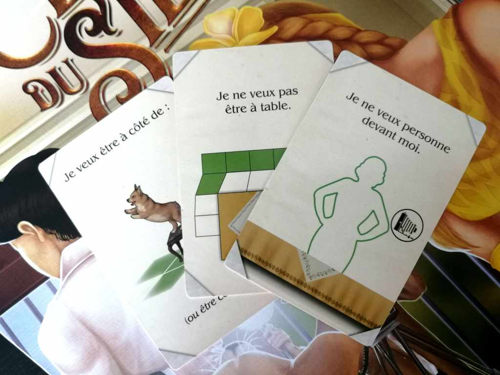 Selon le nombre de joueurs, chacun dispose d’un nombre d’enveloppes correspondant chacune aux Personnages à satisfaire. En effet, lors de la mise en place, trois cartes Préférence sont insérées de manière aléatoire dans chaque enveloppe et déterminent les envies de placement de chaque invité. Une partie se déroule en 6 manches, composées de 4 phases :