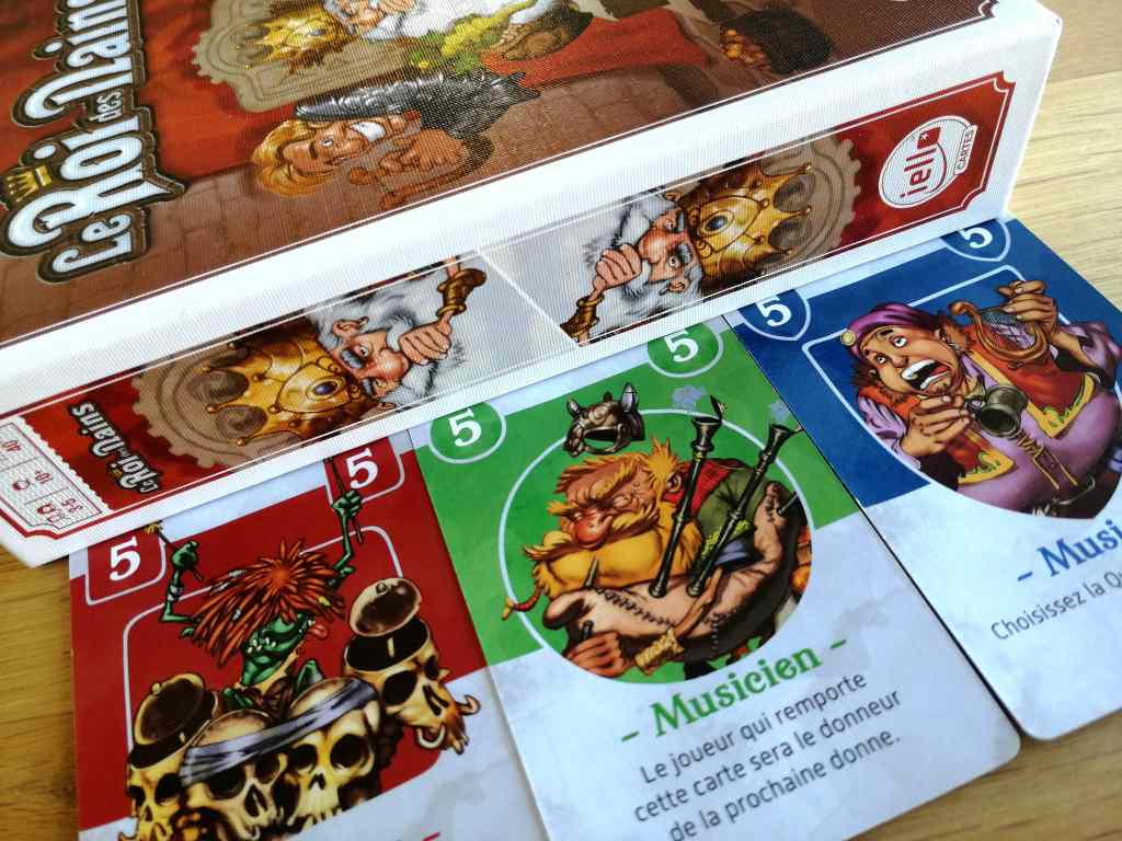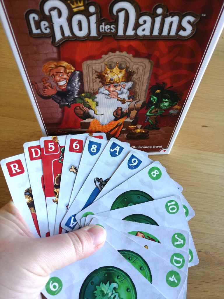 En préambule du livret de règles, il est écrit que le jeu s’inspire du Barbu. Ne connaissant pas ce jeu, c’est avec naïveté que je découvre Le Roi des Nains… Et avec une certaine appréhension due à un thème que je ne porte pas franchement dans mon cœur et collé à tout bout de champ… Ce jeu ayant un peu vécu, on va dire qu’il est arrivé bien avant tous les autres évoquant le même thème fantaisiste. En réalité, le thème est plutôt un prétexte à un jeu aussi malin que l’indique les têtes très espiègles des nains illustrés sur les cartes. Vous pouvez en faire abstraction facilement.