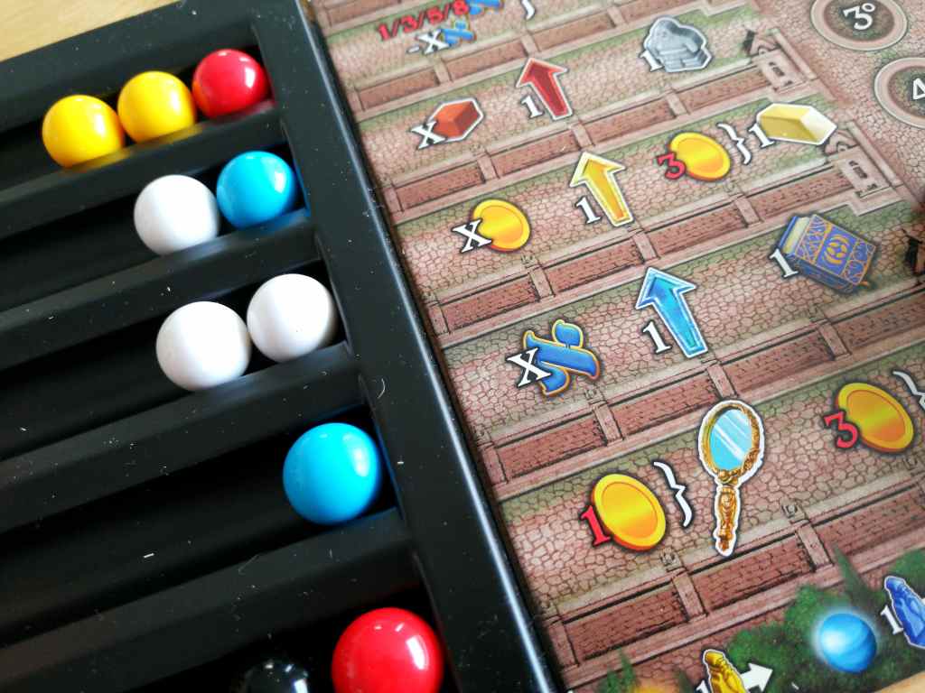 [Miroir] Il s’agit de payer une pièce pour réaliser n’importe quelle autre action de bille et de payer trois pièces pour faire avancer son niveau d’un cran sur la piste d’Étude. Cette piste définit, entre autre, combien de livres il est possible de posséder dans chaque colonne.