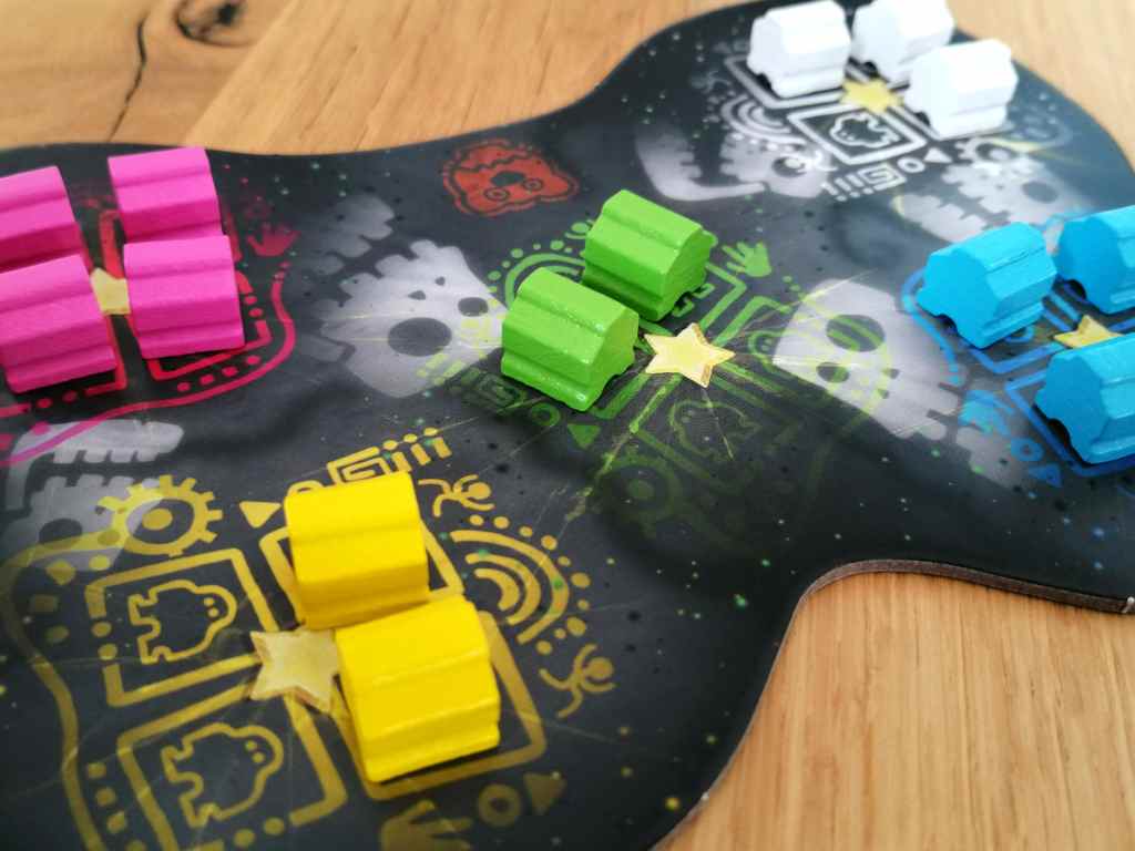 Les « cachettes » d’actions et la « Tour à Meeples » représentent deux idées insolites, réellement rafraichissantes, joyeuses et donnant un caractère unique au titre.