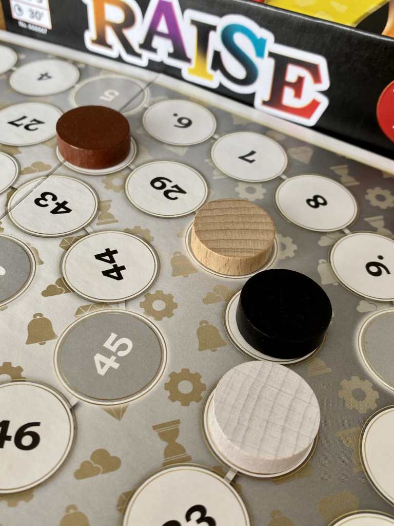 En effet, RAISE propose un système de jeu plutôt malin basé sur des surenchères et du bluff. Ainsi, sur le papier, il s’approche davantage d’un party-game que d’un jeu très sérieux. Pourtant, le ressenti est tout autre. Les subtilités mécaniques obligent les joueurs à une certaine concentration et déclenchent des moments de tension palpables, plutôt rares pour un titre de ce format et de ce style. Mais, ce n’est pas non plus la grosse prise de tête… RAISE reste suffisamment léger pour plaire au plus grand nombre, mais quand même…