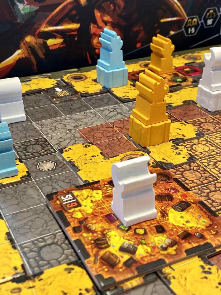 Beaucoup d’éléments donc ! Pourtant, le jeu s’appuie sur un choix simple d’une action principale à chaque tour de jeu parmi deux : le recrutement ou la construction. Mais, la possibilité de jeter des sorts, construire des grandes salles et déplacer les statues rend l’expérience un peu plus brouillonne que prévue. En effet, les tours de jeu en quatre étapes peuvent traîner en longueur et faire diminuer la fluidité du titre.