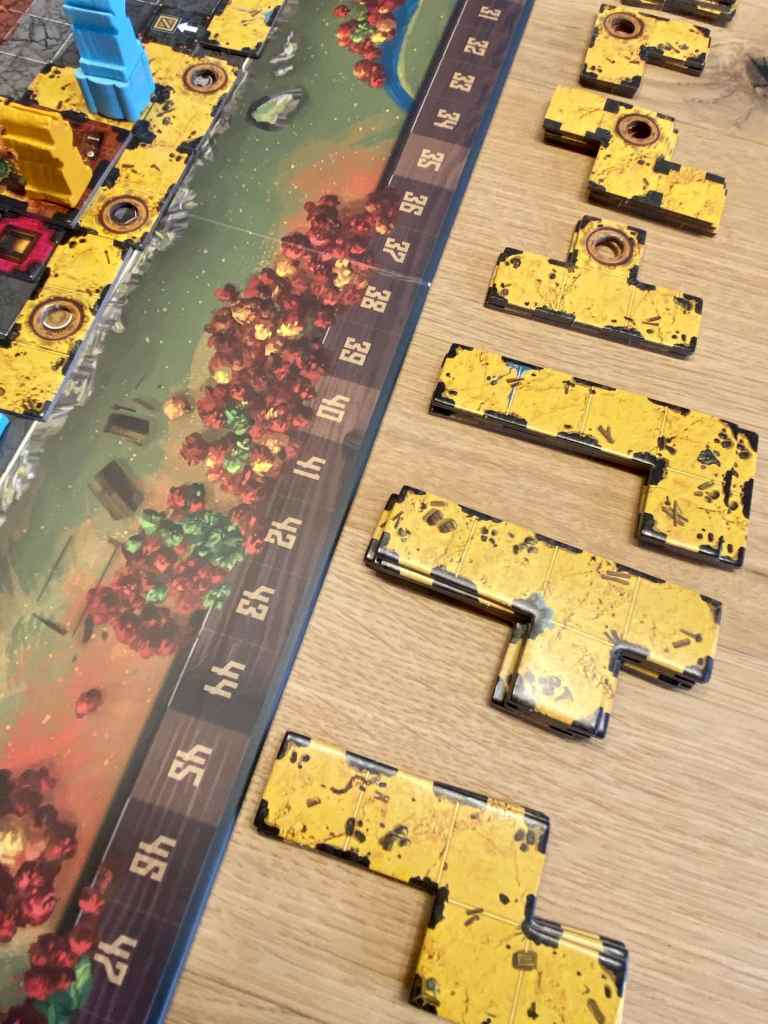 Des ressources qui servent prioritairement à construire des tunnels pour les positionner sur le plateau de jeu afin de se faire un chemin vers le cœur de la montagne. Oui, la thématique du jeu s’avère très présente et parfaitement cohérente avec les objectifs à réaliser. C’est un des plus gros atouts de L’ANTRE DU ROI DE LA MONTAGNE qui parvient à rendre plutôt immersif un système de jeu, pourtant sur le papier, très mécanique.