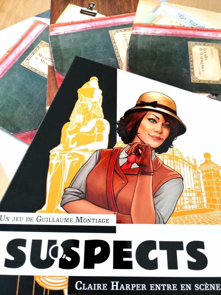 SUSPECTS est un jeu d’enquêtes contenant trois scénarios à élucider, dans l’ordre chronologique de préférence. Les joueurs incarnent Claire Harper, enquêtrice de talent, confrontée à trois énigmes policières différentes dans les années 30. Les trois chapitres, se situent tour à tour dans un somptueux manoir, un théâtre miteux et au cœur d’un temple égyptien.