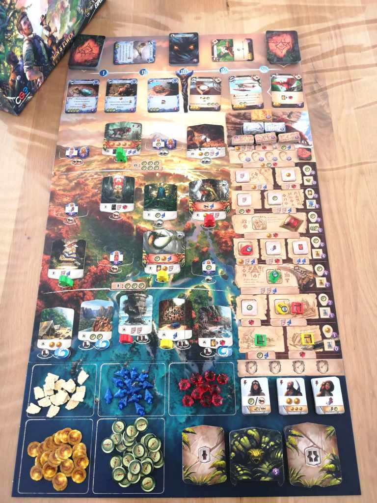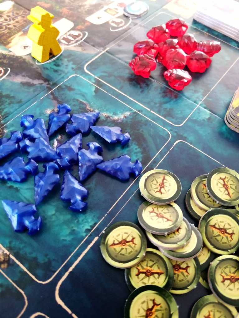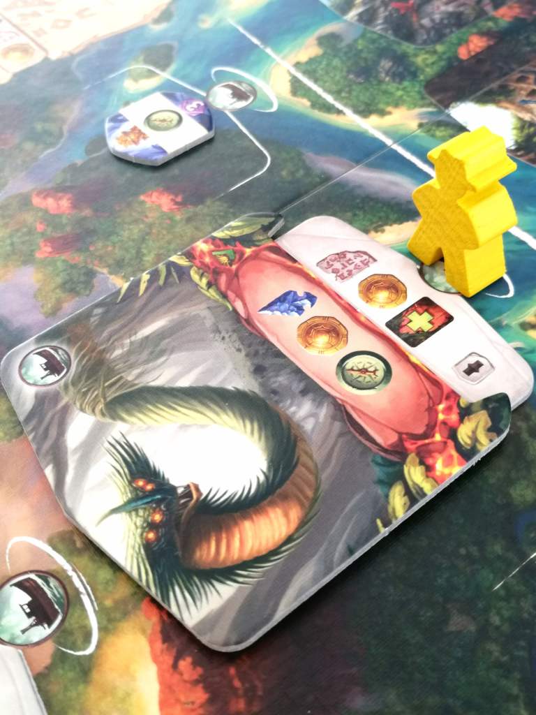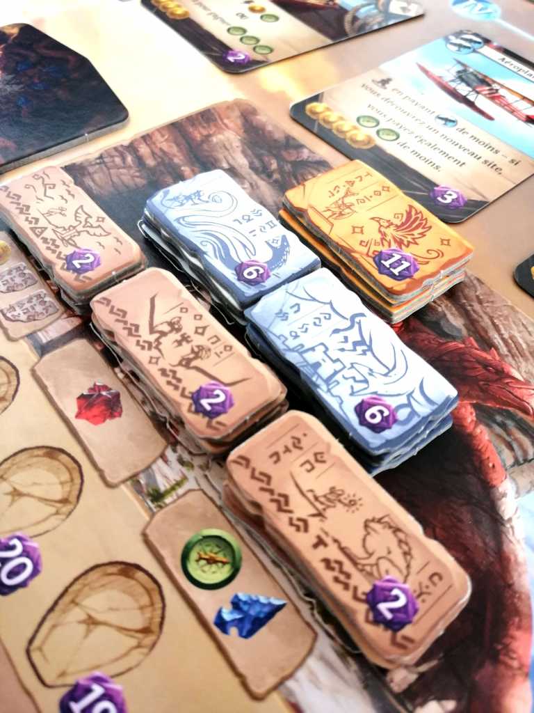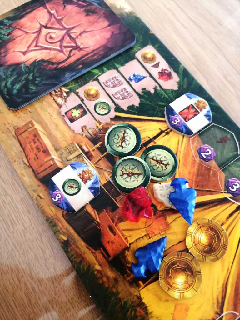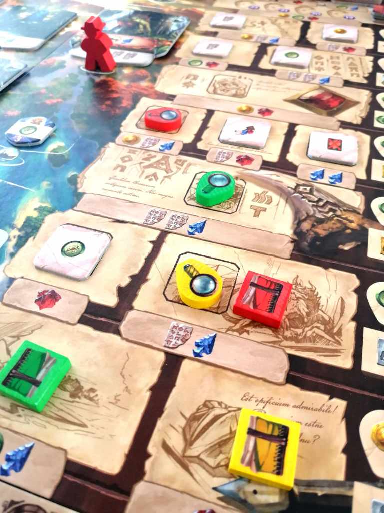 Ainsi, il est souvent possible de s’en sortir par des actions optionnelles ou l’utilisation de bonus éparpillés un peu partout dans toutes les zones du jeu. Ceux-ci, en apparence anodins, s’avèrent rapidement essentiels dans les choix à effectuer et font souvent la différence dans un jeu très équilibré, aux résultats souvent serrés et tendus. Leur positionnement aléatoire en début de partie accentue une rejouabilité déjà très forte de part les différentes tuiles Site, Gardien et Assistant piochées au hasard durant la partie, en plus de l’apparition de quelques cartes Artefact et Objet parmi un très grand nombre et des deux plateaux de jeu disponibles.