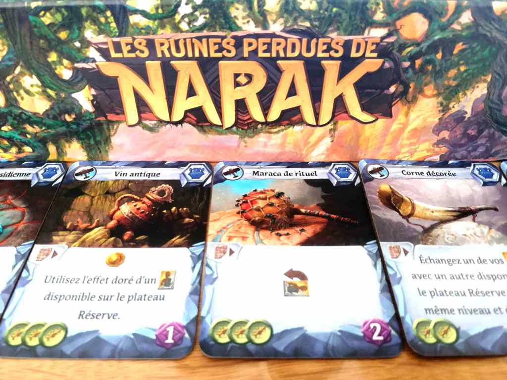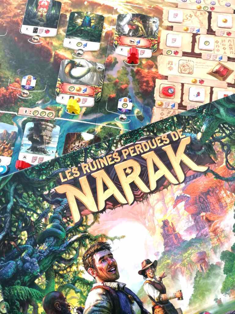 Le jeu réussit à dompter cette thématique forte et très attrayante en proposant une mécanique en adéquation parfaite avec l’histoire qui nous est racontée. Il est rare qu’un jeu « Expert » nous embarque à ce point dans un récit crédible et aussi immersif. Bien évidemment, après quelques tours de jeu, les joueurs perdent de vue l’expédition qu’ils sont en train de mener, concentrés essentiellement sur les ressources nécessaires à leur progression. En effet, LES RUINES PERDUES DE NARAK est avant tout un jeu de gestion dans lequel l’acquisition de ressources relève souvent d’un casse tête belliqueux mais dans lequel, étonnement, une solution existe toujours. Les possibilités et les voies stratégiques pour parvenir à ses fins sont nombreuses même si la plupart du temps elles obligent à des choix contrariés et parfois à des sacrifices.