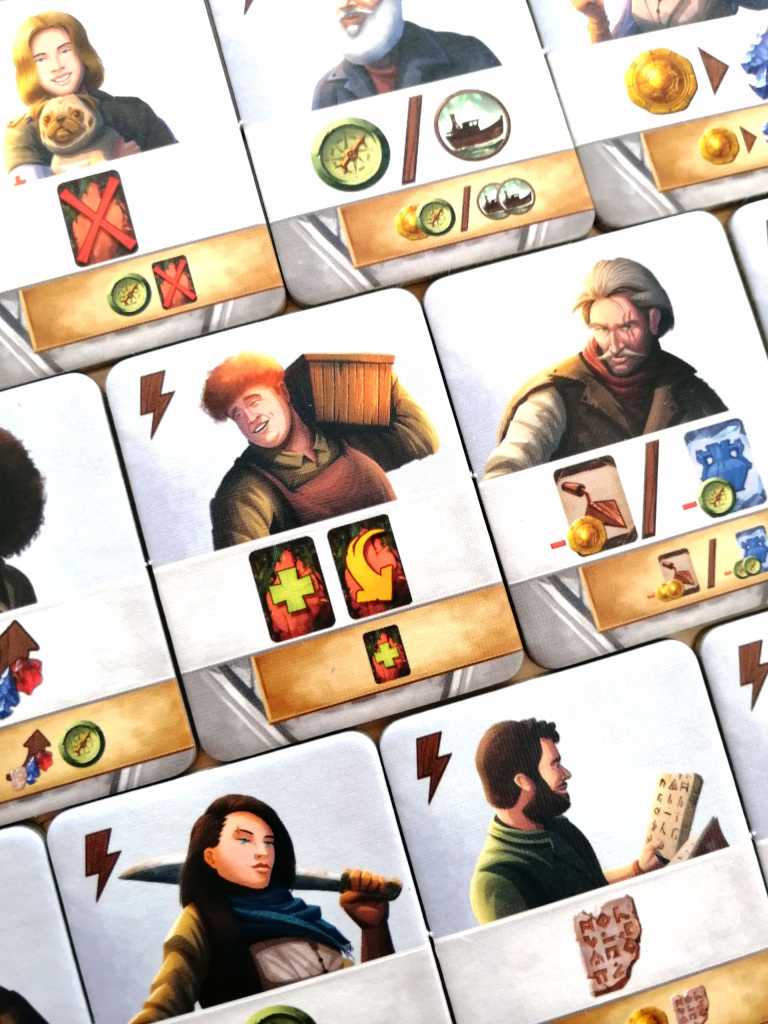 C’est bien dans cette asymétrie que le jeu retrouve une nouvelle fraicheur. En effet, chaque joueur possède désormais un plateau personnel orienté tactiquement et stratégiquement dans des voies de développement différentes. Ainsi, le Capitaine, la Fauconnière, la Baronne, Le Professeur, l’Exploratrice et le Mystique font leur apparition. Ces personnages sont plus ou moins difficiles à prendre en main mais ne dénature en rien l’expérience originale, qui reste tout aussi fluide et accessible qu’auparavant. Chaque Chef d’expédition dispose donc de cartes uniques et de capacités en cohérence totale, à la fois, avec la thématique et le rôle qu’il endosse. Les joueurs ne seront donc pas tenter d’effectuer les mêmes actions en permanence. Cette asymétrie renouvelle avec force l’expérience du jeu de base et lui assure une richesse encore plus surdimensionnée.