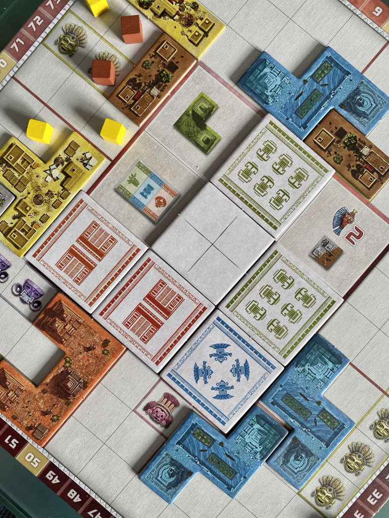 Et les paradoxes ne s’arrêtent pas là. FONDATEURS DE TEOTIHUACAN offre des moments très interactifs et opportunistes dans la pose de disques et le choix d’éléments en nombre limité mais se veut également très solitaire dans l’agencement de sa propre Cité. Ce va et vient permanent entre jeu « multi » et « solo » est déroutant mais très agréable.