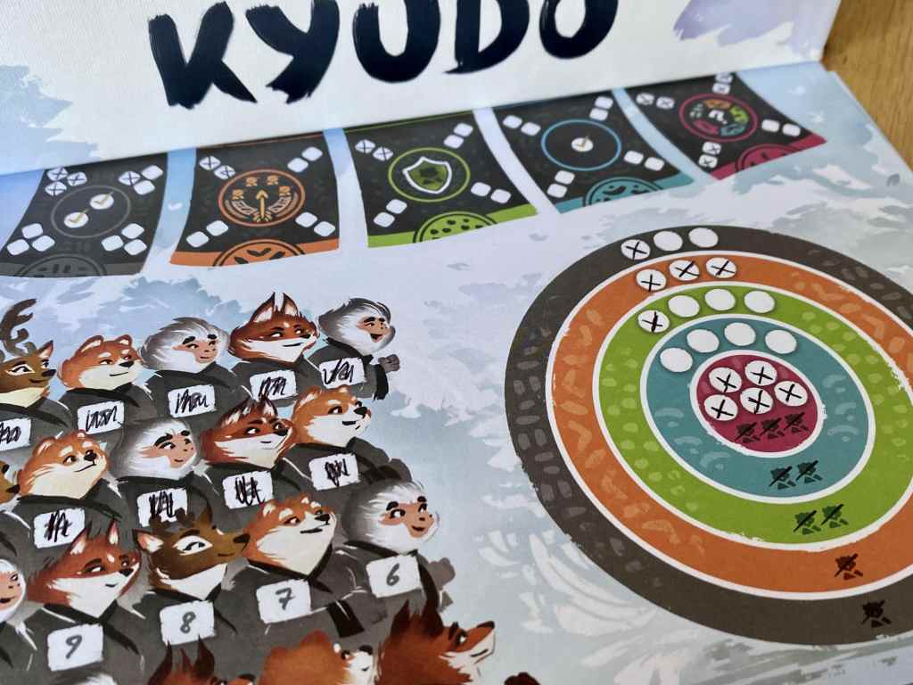 J’ai divorcé avec les jeux à cocher il y a déjà bien longtemps. Seuls quelques-uns, qui se comptent sur les doigts d’une main, continuent à me faire vibrer. Alors, dès qu’un nouveau jeu de ce type apparaît, je ne suis pas la plus enjouée. Mais dernièrement, WELCOME TO THE MOON ou GET ON BOARD m’ont clairement donné tord. La présentation de KYUDO comme un Roll & Fight interactif, signé par trois grands noms du jeu moderne m’a complément « hypé », presque à l’insu de mon plein gré !