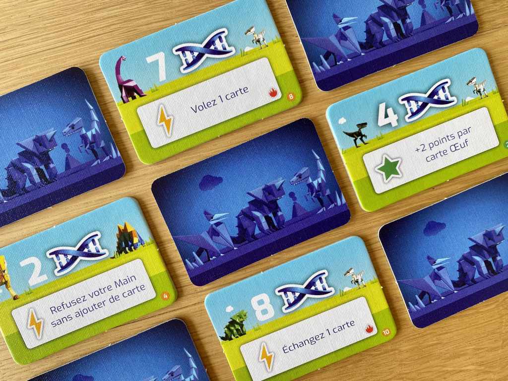 Comme son grand frère, il s’agit d’un jeu de cartes aux règles très simples et à la mécanique plutôt maligne. Ici, les joueurs vont devoir collectionner des espèces de dinosaures et pourront soit ajouter les cartes de leur main devant eux, soit les faire passer dans leur intégralité à leur voisin de gauche ou de droite selon la manche en cours. La subtilité provient de cette main de carte circulante, puisque les joueurs choisissant cette option sont dans l’obligation de rajouter une carte de leur collection différente des espèces en main. Et comme chaque espèce score d’une façon différente à la fin de chaque manche, les cadeaux envoyés aux voisins peuvent s’avérer réels, empoisonnés ou mitigés.