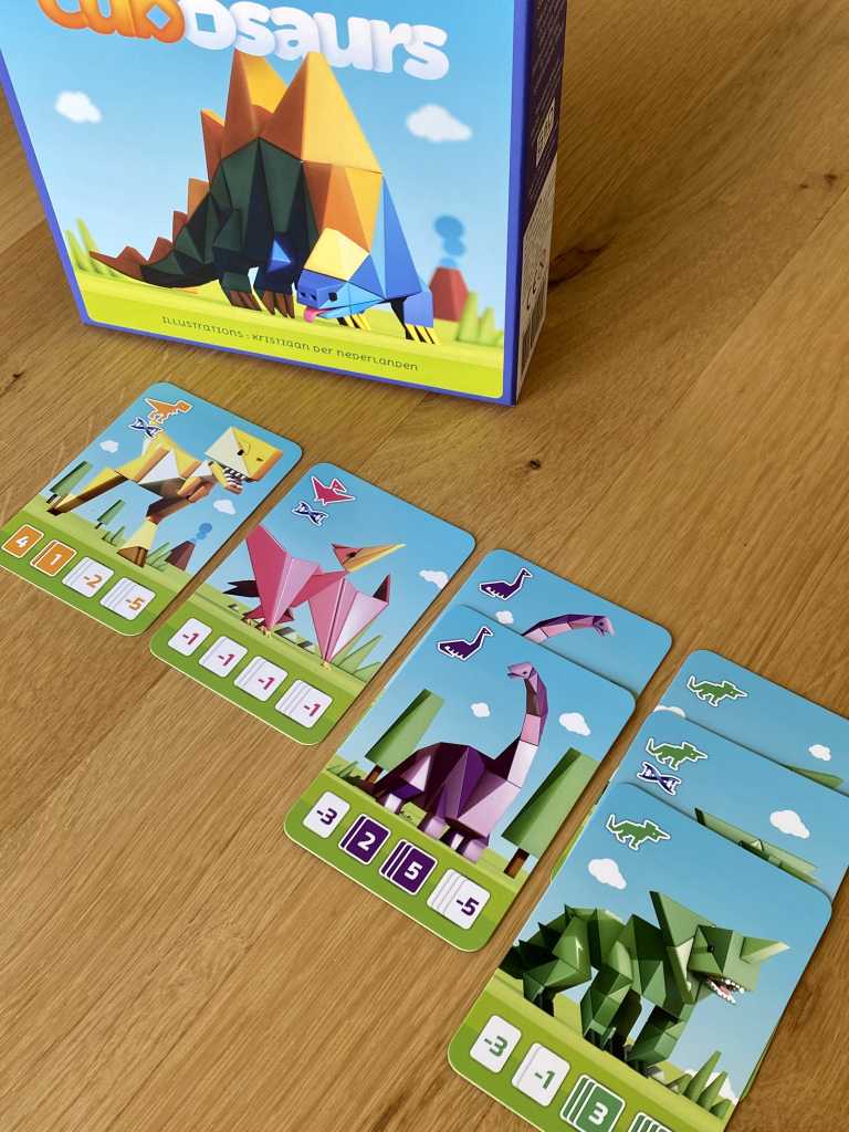 Après CUBIRDS, voici CUBOSAURS. Si le format, le matériel, la direction artistique et le nom du jeu sont quasiment identiques, le jeu, lui, s’avère très différent !