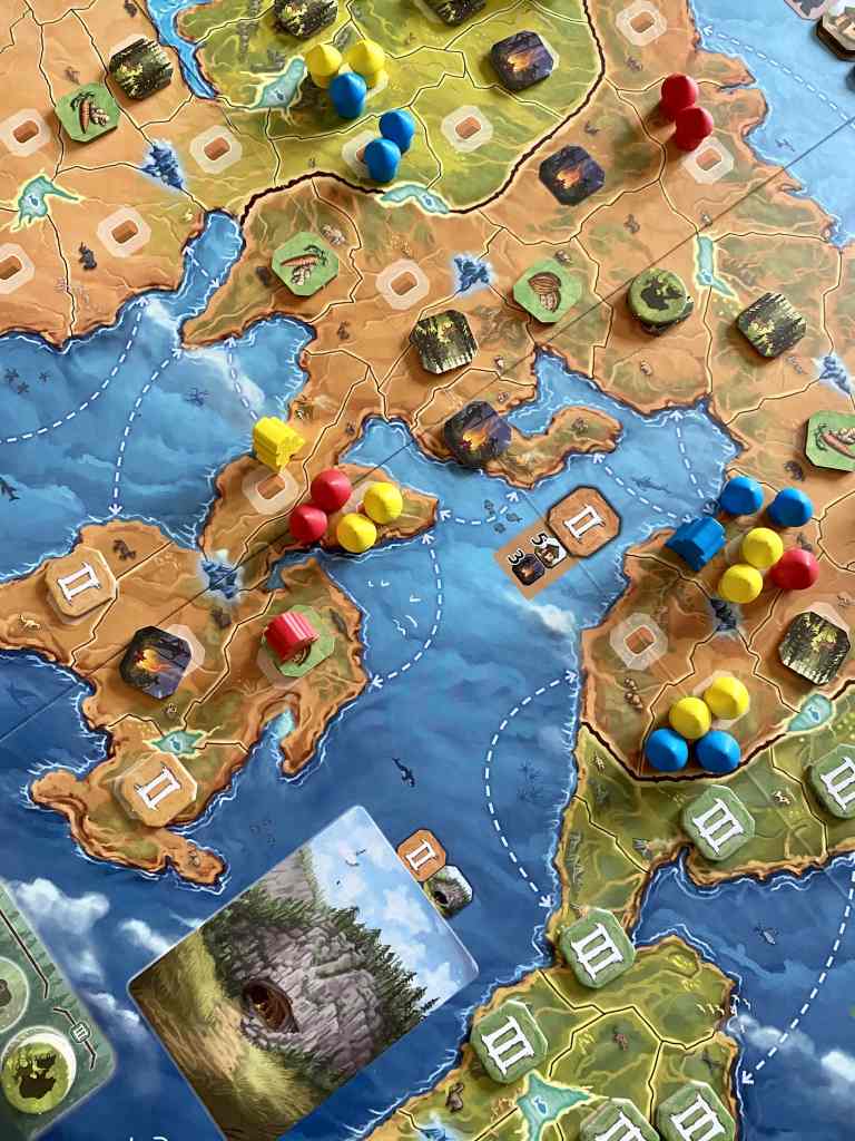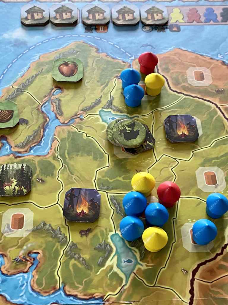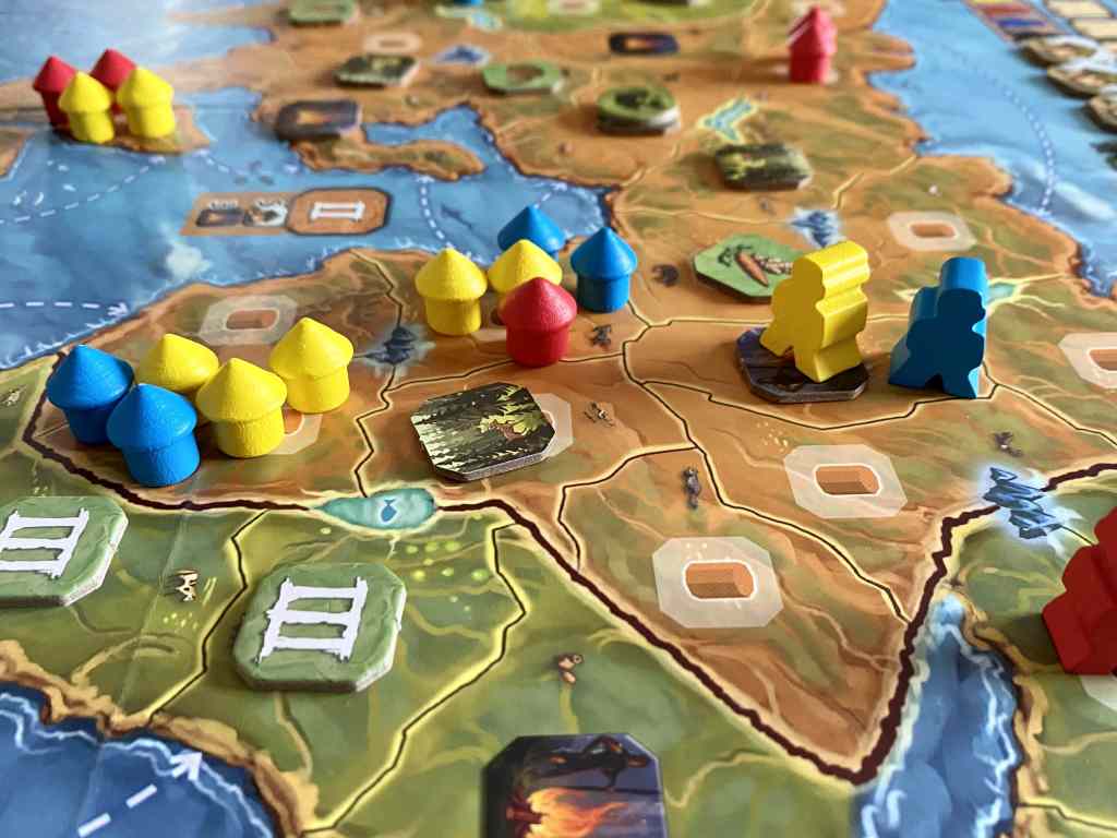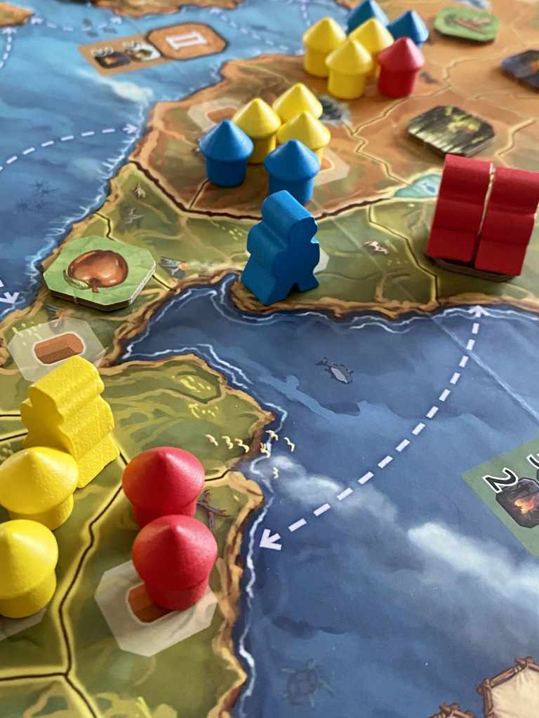 – Se déplacer. Les explorateurs du joueur actif sont déplacés jusqu’à deux cases de distance dans une région possible d’accès.