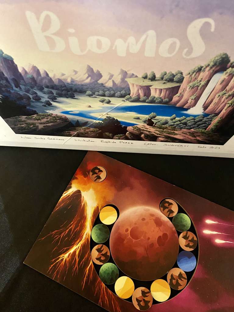 Du même auteur que Photosynthesis et cela se ressent beaucoup. Le matériel très épuré attire l’œil. Le « gameplay » est très abstrait. Il s’agit de faire pousser des arbres dans différentes zones, toujours sous l’influence de la rotation du soleil. Il faut répondre aux objectifs en se développant progressivement. Un début de partie ne m’a pas suffi pour réellement comprendre tous les enjeux. À approfondir.