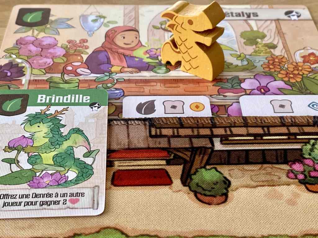 ° Collecter. Le joueur actif récupère les Denrées (ou Pièces ou Dragons Artisans) de la Boutique, ainsi que celles des Dragons Artisans présents et des Enchantements. Il peut ensuite placer un Dragon Artisan de sa main dans cette Boutique en respectant le type que celle-ci réclame. Puis, il peut Embraser un Dragon, c’est-à-dire appliquer son effet avant d’utiliser la capacité de la Boutique.