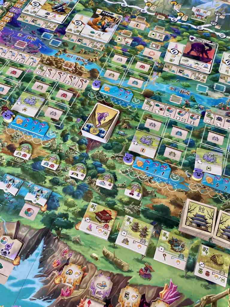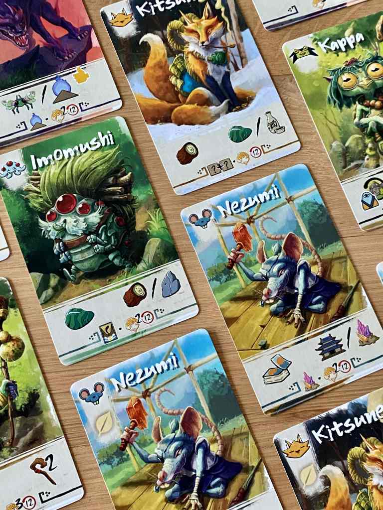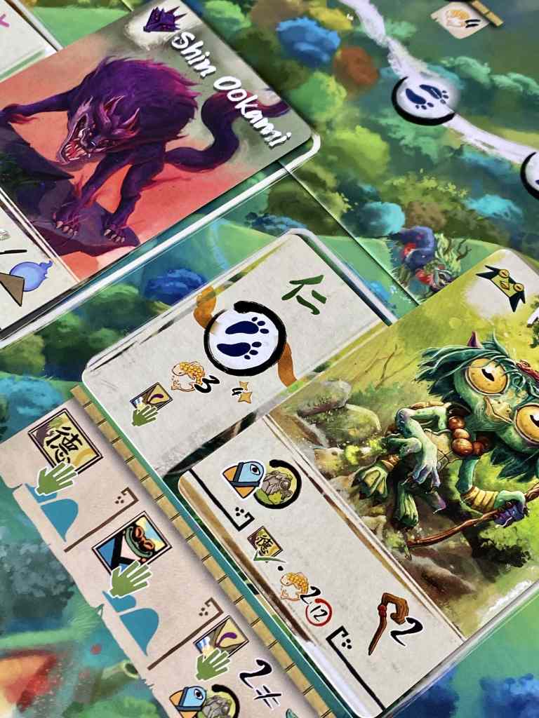 – Hiver : Le Repos de la Forêt. Les joueurs récupèrent leurs dés, peuvent écarter une de leurs cartes Yokaï de la partie et obtenir les points de victoire qu’elle octroie, placer les cartes Yokaï jouées dans leur défausse. Le plateau est réinitialisé et le pion Grand Esprit avance d’une case sur la piste de Manches.