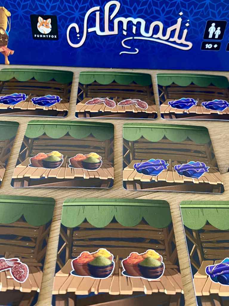Ce sont les bons échos entendus de part et d’autre, qui m’ont poussée à découvrir ALMADI sur le tard. ALMADI est un incompris. Il faut le dire, le jeu n’a pas eu le succès qu’attendait l’éditeur… Pourtant, dès l’ouverture de la boîte, le plaisir est au rendez-vous.