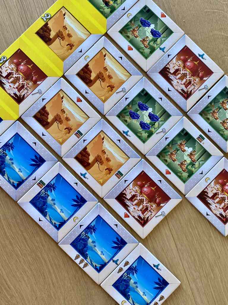 – Le positionnement des Palais (à côté d’Oasis et/ou de Marchés). De plus, chaque mosaïque est positionnée sur un Palais de sorte que celui-ci double les points qu’il octroie.