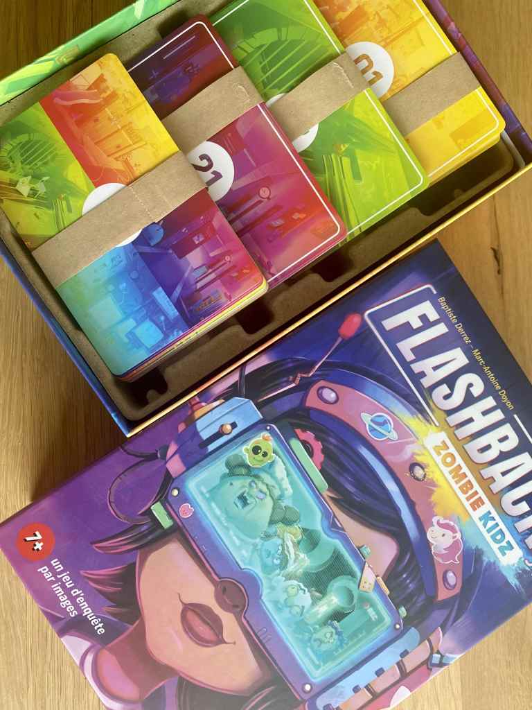 Je n’ai pas besoin de vous faire un dessin, FLASHBACK m’a étonné et m’a impressionné. Même entre adultes, ayant conservé une âme d’enfant, la sauce a pris. Je n’ose pas imaginer l’ambiance avec un jeune public autour de la table. L’édition est impeccable, du thermoformage aux illustrations en passant par le matériel à manipuler. Si la mécanique de découverte de cartes s’avère commune à beaucoup de jeux d’enquêtes, c’est avec son concept, associant saut dans le passé et points de vue de personnages, que le jeu prend son envol. La boîte contient trois scénarios, pouvant être redécouverts d’une nouvelle manière après les avoir effectué une première fois. Si vous cherchez un jeu récent à mettre sous le sapin de votre progéniture, il est tout trouvé !