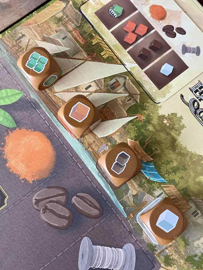 Parce qu’en réalité, le but n’est pas compliqué. Il faut être le plus riche et parier sur le bon cheval. Encore un point appréciable, le décompte de fin de partie est simple. Mais justement, tout n’est pas si simple, car il faut anticiper et prévoir les actions des adversaires et les potentiels ajouts et pertes de ressources des deux marchés pour jouer de manière efficace. Ainsi, il y a de fortes interactions sans que cela ne paraisse à première vue et le hasard vient se mêler à nos décisions, à moins que lui aussi, on apprenne à le contrôler en allant chercher l’exclusivité des informations. Il faut par conséquent se jouer du hasard et des autres pour se faire une place au soleil. Encore une fois, cela n’est possible qu’avec une lecture très subtile de la partition qui est en train de se jouer autour de nous.