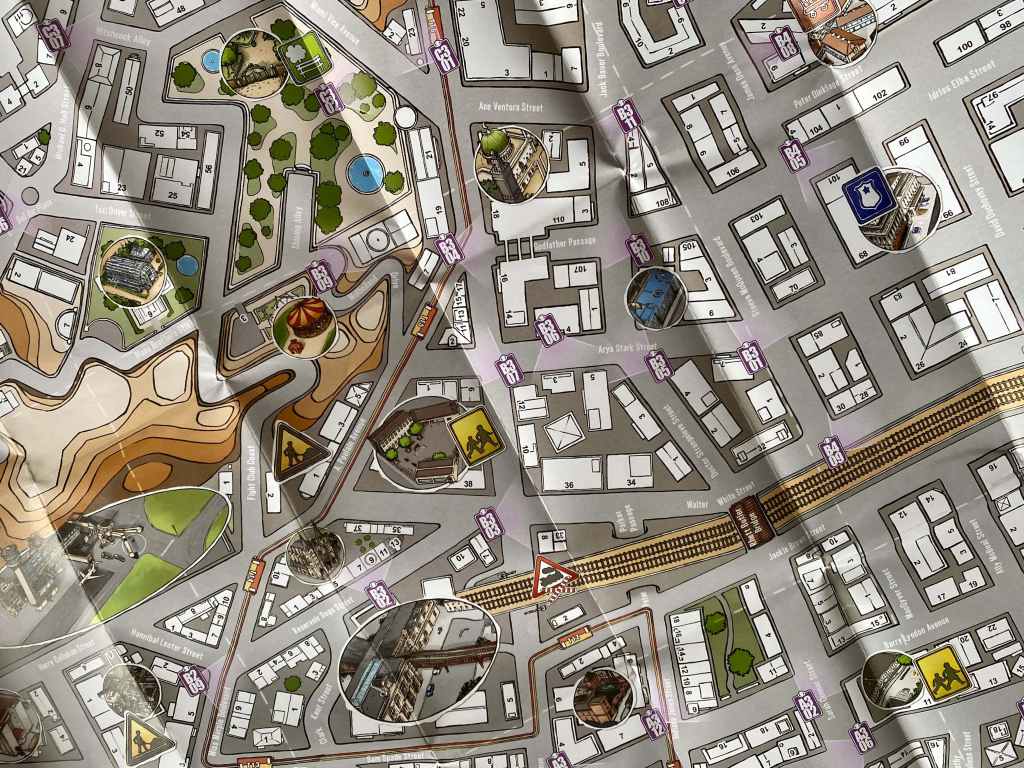 TRACKS, c’est quinze enquêtes sonores qu’il vaut mieux faire dans l’ordre. C’est un plan de ville sur lequel il faut trouver les lieux où se réfugient les suspects et/ou se déroulent des faits peu catholiques. Attention, rien de rédhibitoire pour un public plus jeune, même si le jeu est clairement conçu pour des adultes. C’est l’utilisation d’une application de « smartphone » ou tablette permettant la diffusion de bandes sons. C’est une interface très épurée, claire, et simple d’utilisation. En résumé, c’est extrêmement bien conçu.