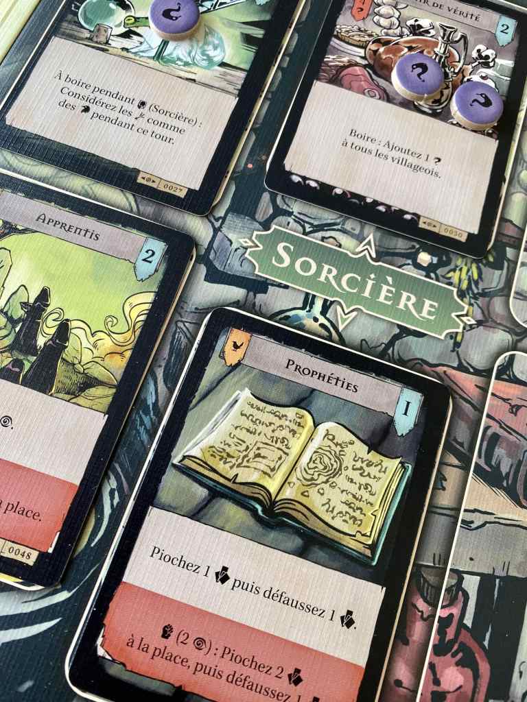 – La Sorcière remporte la partie si elle parvient à lancer un rituel, ou si le Chasseur élimine trois villageois innocents. Le joueur incarnant la Sorcière pioche en début de partie une carte Suspect qui détermine sa véritable identité parmi les villageois.