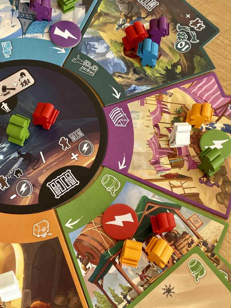 La mise en place aléatoire des lieux permet une meilleure variété entre parties. Malheureusement, on ne retrouve pas franchement cette variété au sein même d’une partie. Les manches sont assez répétitives. Le jeu ne dure d’ailleurs que six manches pour éviter de tomber dans l’ennui. L’expérience s’avère également un peu plate, paradoxalement au thème très enjoué qu’il met en scène. Certes, les joueurs prendront plaisir à s’en mettre plein les poches par un très bon discernement des actions adverses, mais l’attrait égalitaire des lieux convoités accentue le hasard dans les prises de décisions.