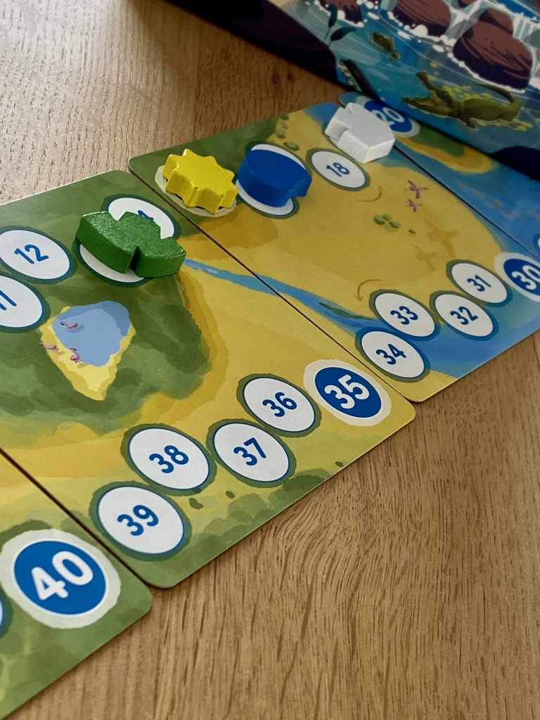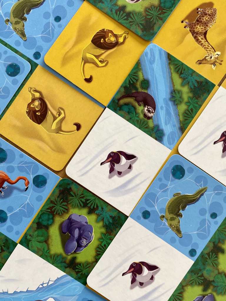 NIMALIA possède au moins un point commun avec le mastodonte de Super Meeple, c’est son thème. En effet, les joueurs auront à cœur de concevoir la réserve animalière la mieux organisée pour recevoir des espèces aussi diverses que des crocodiles ou des pingouins. Nous ne sommes pas bien loin du zoo ! Pour le reste, le titre ne joue pas dans la même catégorie. Nous sommes ici dans un jeu aux règles très familiales, qui se joue en une vingtaine de minutes.