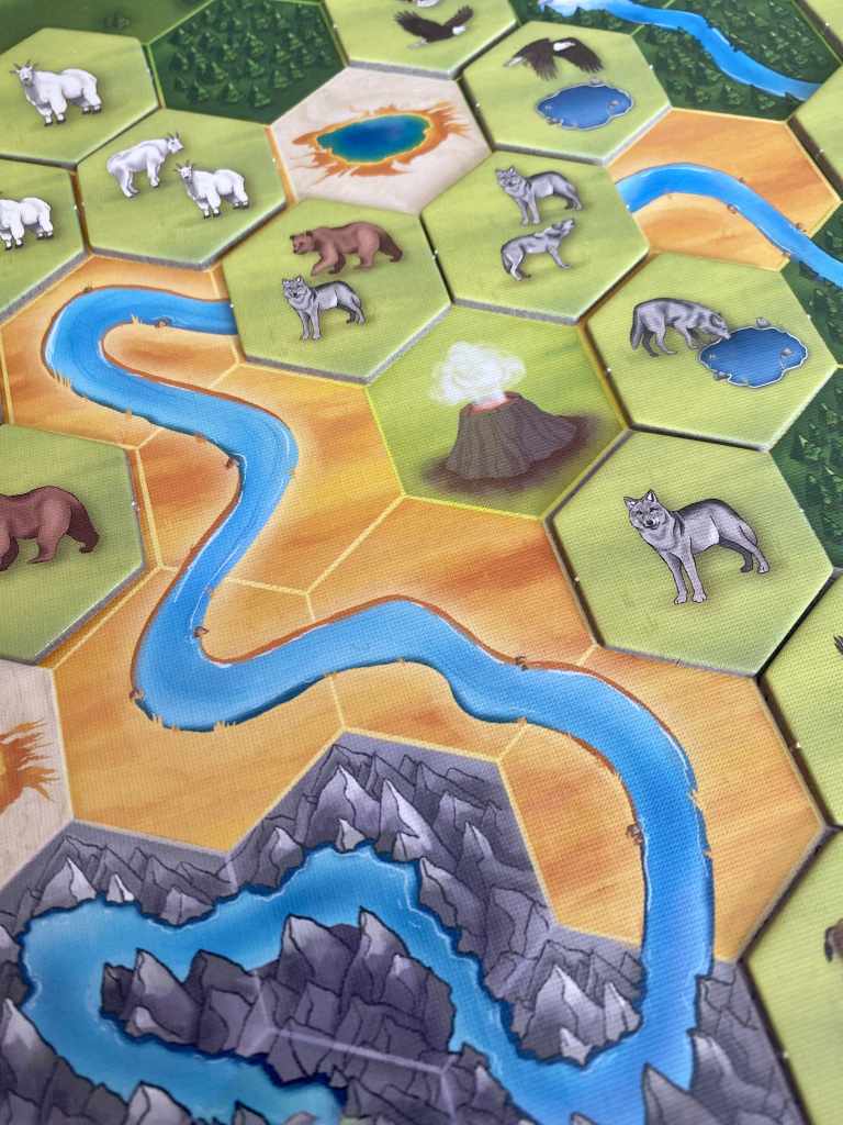 Je ne ferai aucune comparaison avec SAVANNAH PARK, le grand frère de CALDERA PARK, pour la simple et bonne raison que je n’ai jamais fait une partie entière du premier. C’est donc presque vierge de toute histoire familiale que je découvre les geysers de Yellowstone et la faune environnante.