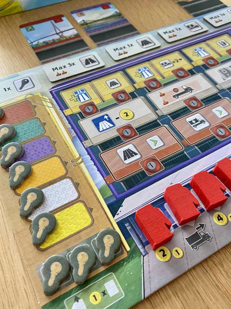 Et puis surtout, la beauté ne fait pas tout ! AUTOBAHN mérite qu’on lui ouvre nos portes malgré tous nos préjugés de joueurs mesquins et habitués à d’autres codes esthétiques. Pourquoi ? Et bien parce que le jeu est suffisamment différent de nombre de jeux experts actuels. Il présente aussi une complexité à la hauteur de sa complétude. En effet, il propose de la construction sur plateau principal, du développement de capacités personnelles, de la gestion de main de cartes et de la livraison de ressources. Les joueurs auront fort à faire pour surveiller tous les aspects de ce « fouillis » organisé, n’oublions pas que nous représentons une entreprise tout de même !
