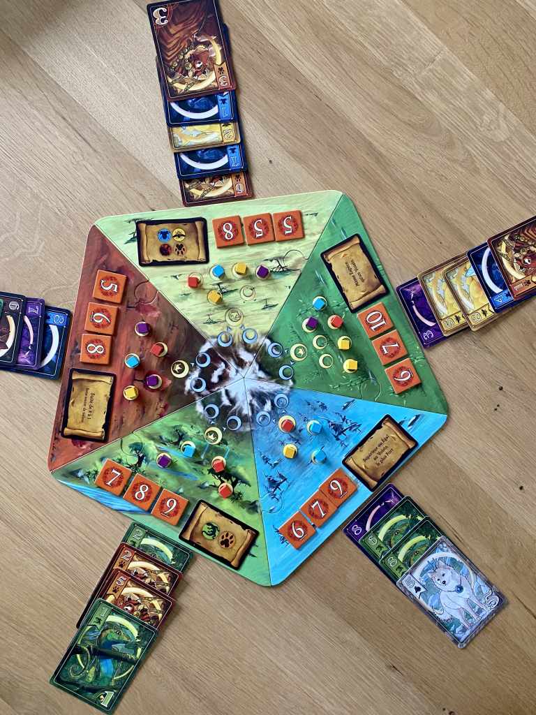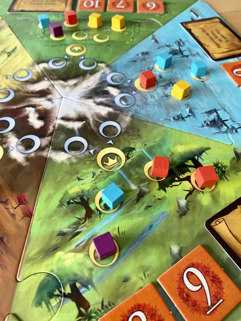 Mais le système de jeu est véritablement malin et porte LES ROYAUMES SAUVAGES dans une autre dimension qu’un simple jeu de chance. Cette association entre hasard et prise de décision légère est une vraie réussite. Autre réussite, c’est la rejouabilité du titre. Entre les points de victoire mis en place aléatoirement en début de partie, la variable des cartes possédées et les nombreux prérequis de zones présents dans la boîte et s’associant différemment entre eux selon la place qu’ils occupent sur le plateau, le jeu bénéficie d’un nouvel engouement à chaque partie. Non, vraiment, LES ROYAUMES SAUVAGES est une très bonne surprise. Voilà un jeu simple mais pas simpliste, sans prétention et élégant.