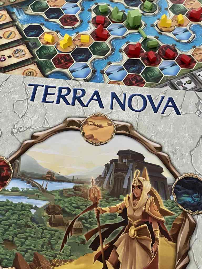 Non, je ne comparerai pas TERRA NOVA à un (ou deux titres) que tout le microcosme ludique a sur les lèvres. J’ai un peu de mal avec l’idée d’un milieu qui ne s’adresse qu’à lui-même. Pourtant, je m’inclus souvent dans ce « snobisme » en utilisant des termes techniques que le grand public ne connaît pas. Mon surnom, « lemeeplejaune », en est le parfait exemple. Mais je me soigne. Alors, oui, TERRA NOVA est dérivé d’un jeu expert très réputé, que 98 % des clients d’une boutique ludique ne connaissent pas. Donc, en vérité, on s’en tape le coquillart…