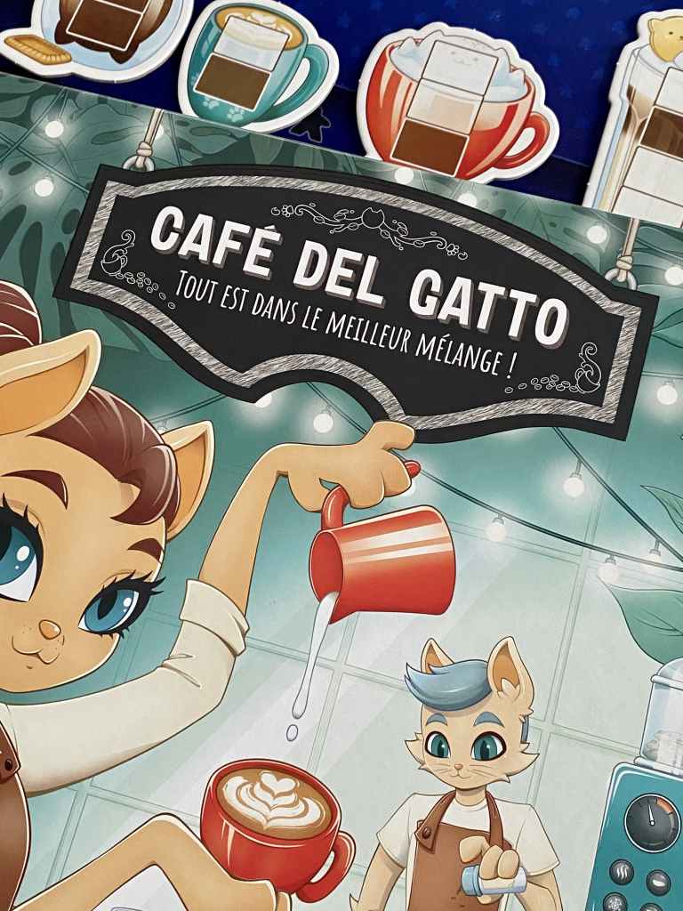 Même si je ne suis pas vraiment fan des chats, que l’on exploite de plus en plus souvent dans le monde ludique, il faut bien admettre que c’est le thème qui m’a attiré dans les pattes de CAFÉ DEL GATTO.